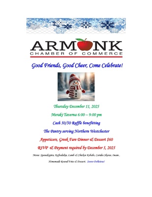 Armonk Chamber Holiday and Networking Party Come Relax, Mingle and Celebrate Another Successful Year Cocktail Hour followed by Buffet Dinner